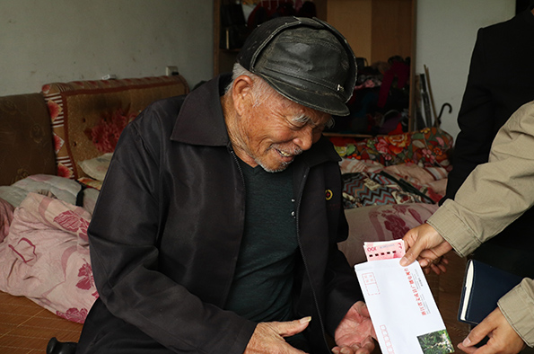 见到老人时,老人躺在床上。家人介绍,老人于几年前不慎摔倒,此后一直卧床,生活不能自理,日常生活由其儿媳照顾,生活比较困难。